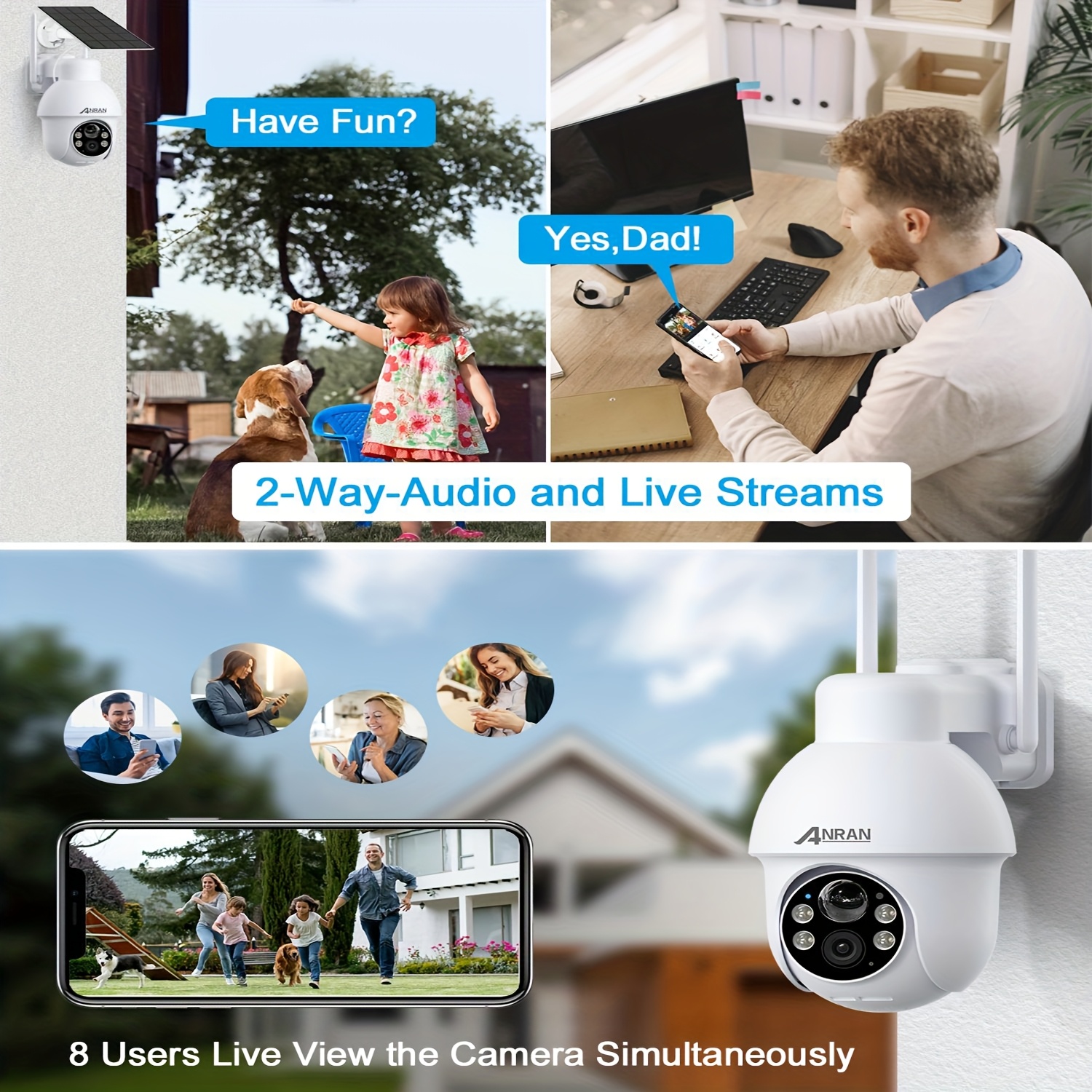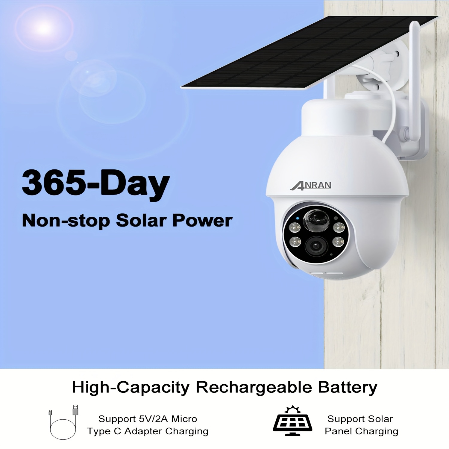 Alimenté par énergie solaire et de haute qualité : Dotée d’une charge solaire, cette caméra est économe en énergie et fonctionne en continu sans avoir besoin de sources d’alimentation externes