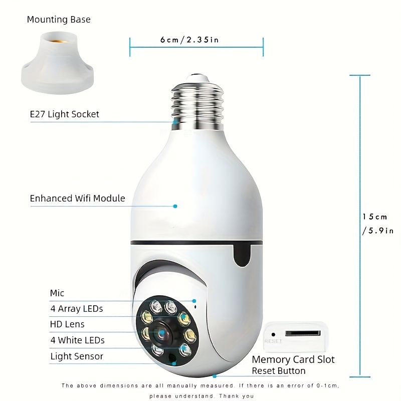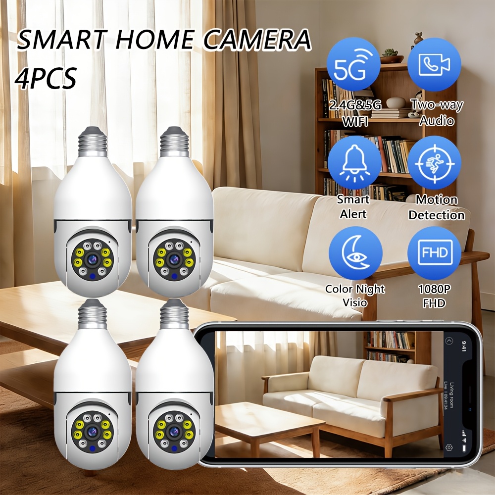 3 avis pour 2pcs/4pcs Caméras de sécurité ampoule contrôlées par l’application Ease Life – Wifi sans fil intérieur extérieur (5Ghz), Vue à 360°, Douille à visser E27, FHD 1080P, Vision nocturne couleur, Détection de mouvement pour la sécurité de la maison