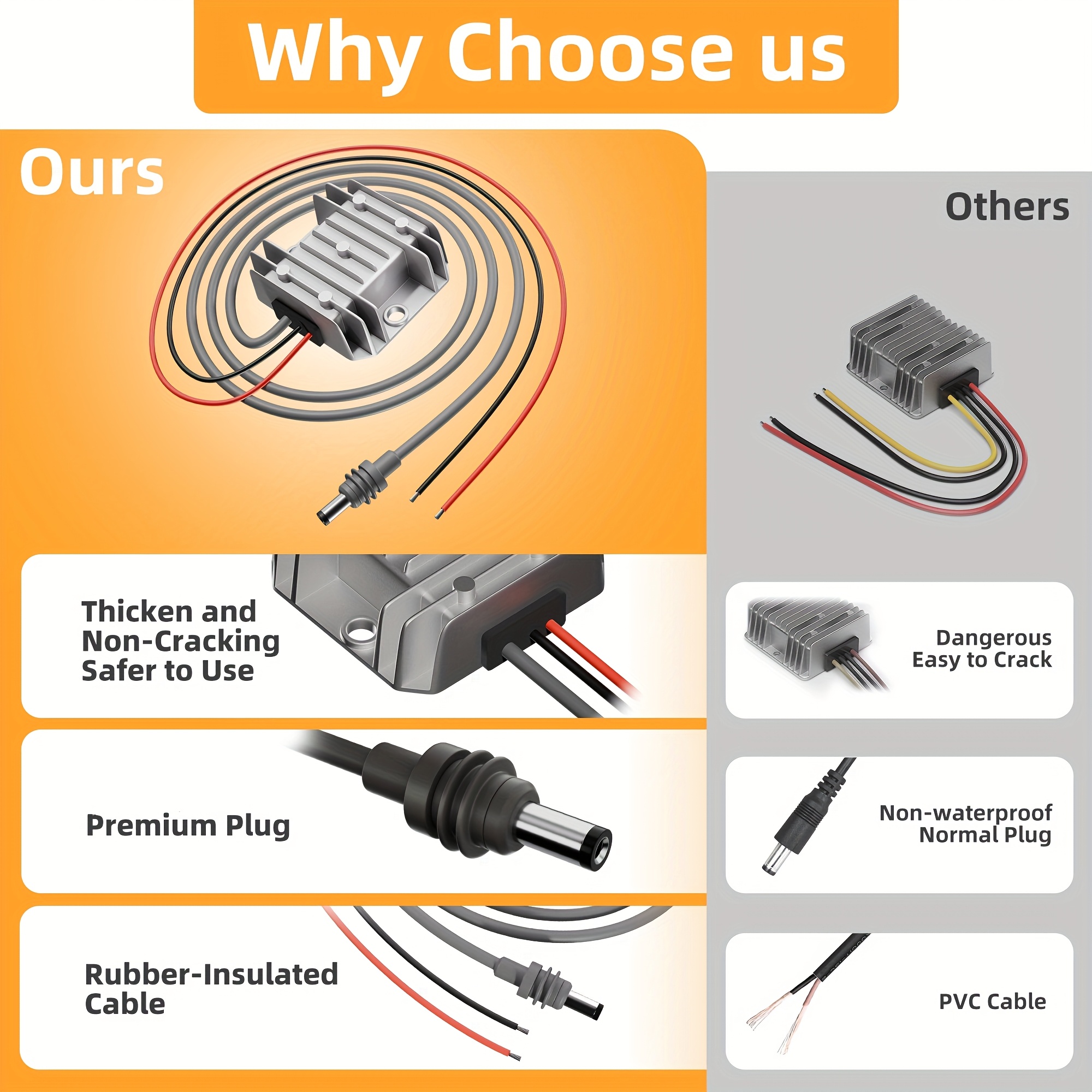 3. Construction robuste et prête pour l’extérieurConçu pour une utilisation exigeante, il dispose d’un boîtier épais et robuste ainsi que de composants de haute qualité. Le design intègre une protection contre les facteurs environnementaux, tandis que la prise DC premium et les câbles isolés 14AWG assurent une durabilité à long terme