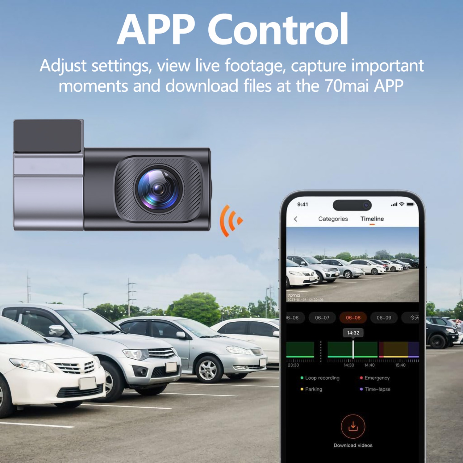 Équipée d’un WiFi 2.4G et d’une application pour les appareils Android et iOS, cette caméra de véhicule 1080P avancée permet un streaming en direct sans effort, le téléchargement de vidéos, les ajustements des paramètres, l’édition et la partage de vos enregistrements. Vous pouvez rapidement partager des clips sur des plateformes comme YouTube, Twitter et Facebook avec un simple tapotement, vous permettant de présenter vos voyages à vos amis.