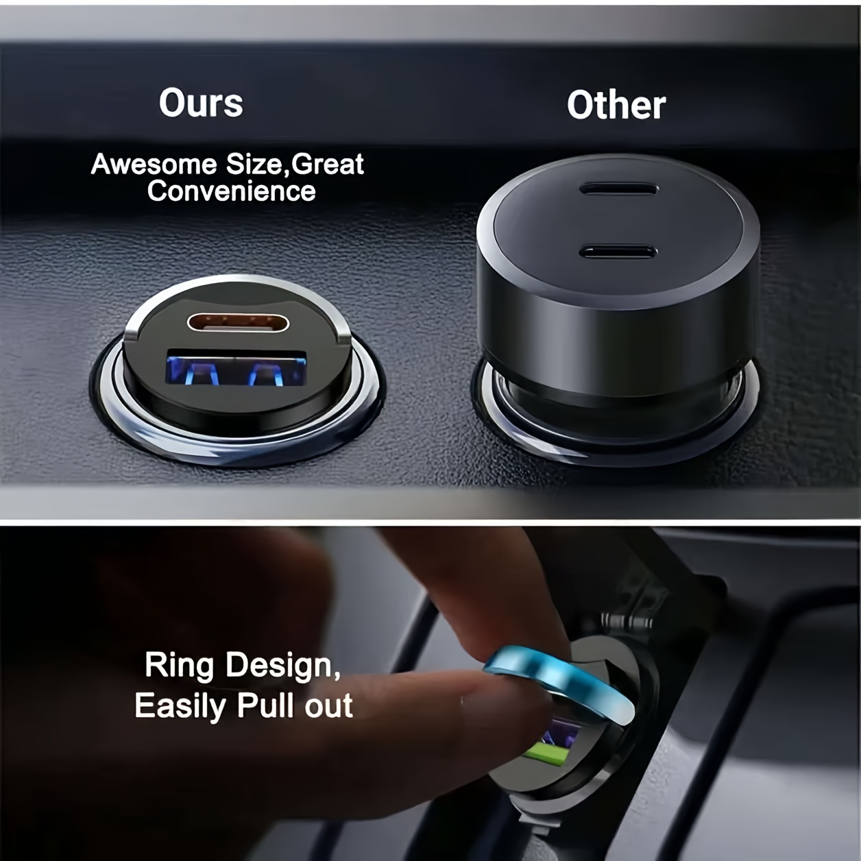 4 avis pour Chargeur de voiture ABS mat 36V 100W, charge rapide USB Type C double interface, adaptateur d’alimentation mini en alliage avec anneau de traction résistant à la corrosion