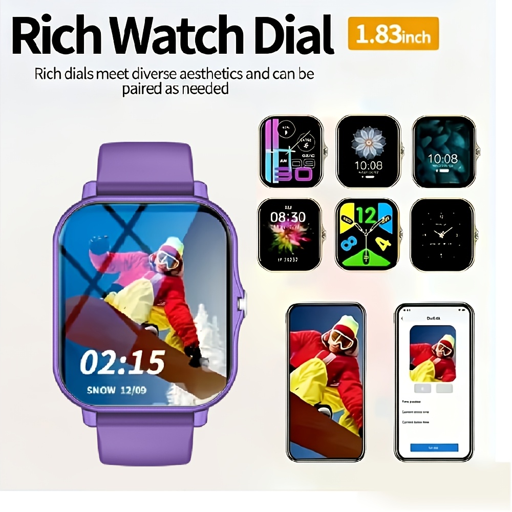8 avis pour ERUN Compatible Android & iPhone, Montre Connectée Sans Fil avec Écran Tactile HD 1,83″, Appels/Musique Sans Fil, Télécommande, Cadrans, Modes Multiples, Suivi de Fitness, pour Hommes & Femmes, Cadeau Idéal de Montre Connectée