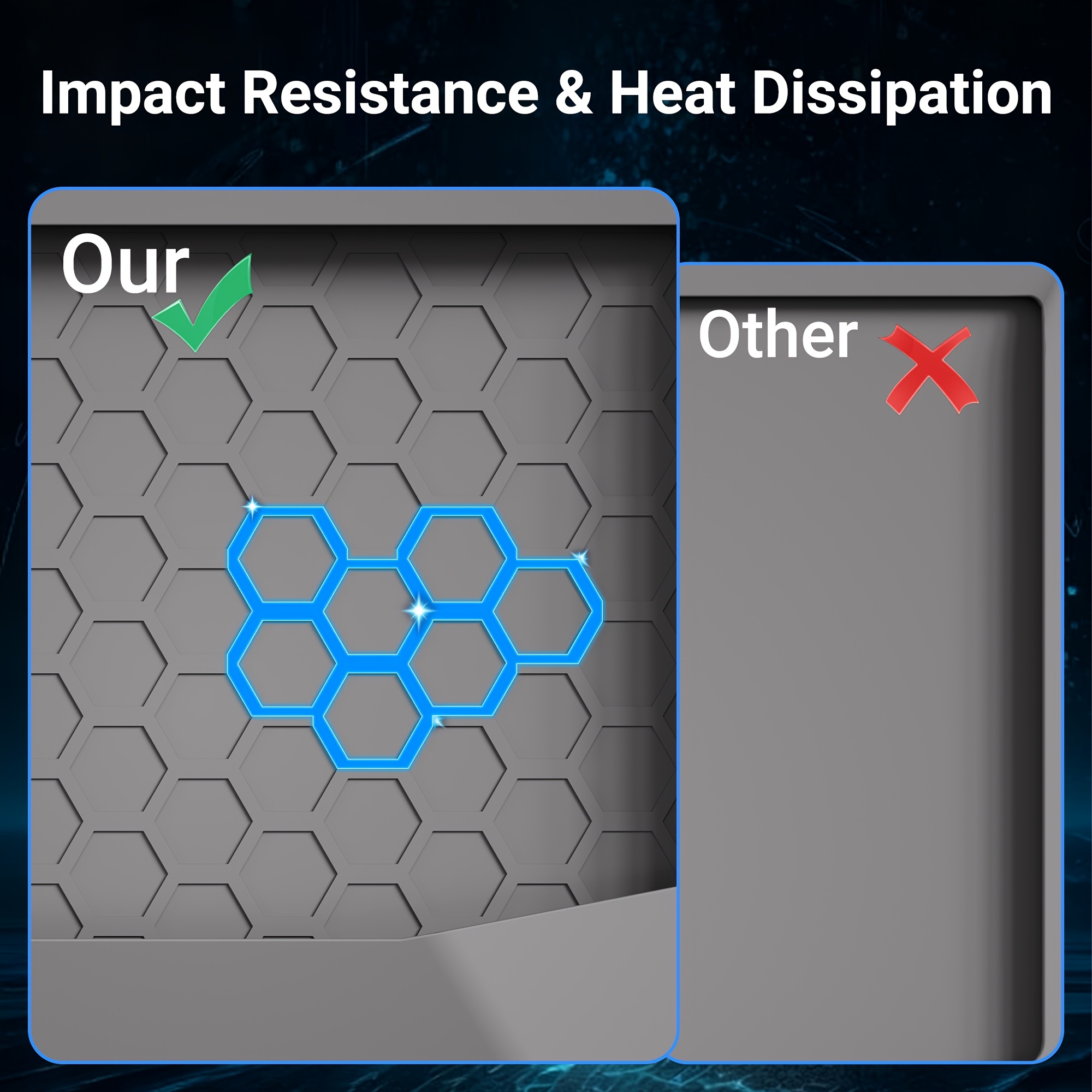 4. Grip amélioré et structure de refroidissement intelligente conçues avec du silicone de qualité supérieure, doux pour la peau, pour une prise confortable et ajustée. La conception en nid d’abeille arrière n’est pas purement esthétique ; elle améliore le flux d’air pour favoriser la dissipation de la chaleur, assurant que votre Starlink Mini fonctionne à une température inférieure.