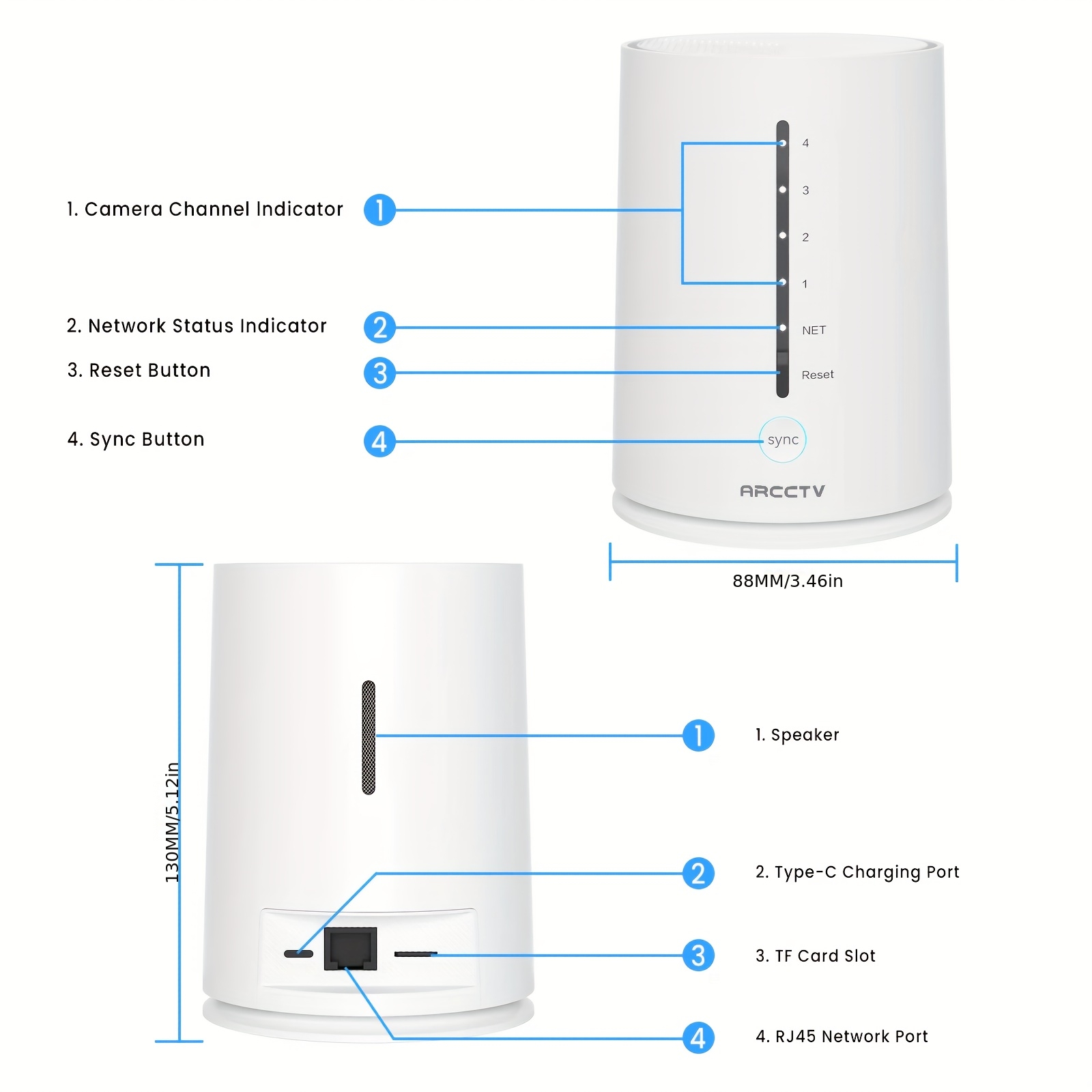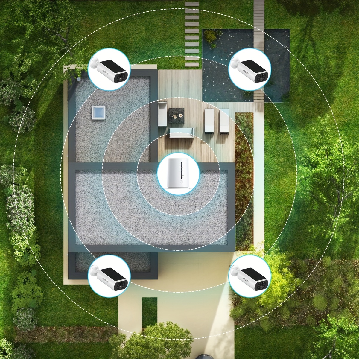 Base d’accueil centralisée (64 Go de stockage) : Le hub fourni dispose de 64 Go de stockage intégré (qui peut être étendu à 256 Go) pour une enregistrement local sécurisé. Contrôlez les quatre caméras à partir d’une seule interface facile à utiliser – sans frais récurrents et avec une connectivité fiable.