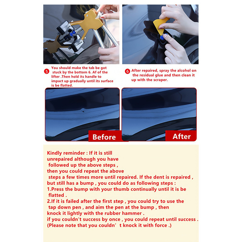 Kit de réparation de bosses sans peinture pour voiture, avec pattes de traction et tapis, outil ajustable pour débosselage mineur, accessoires optionnels, redresse-bosses doré photo review