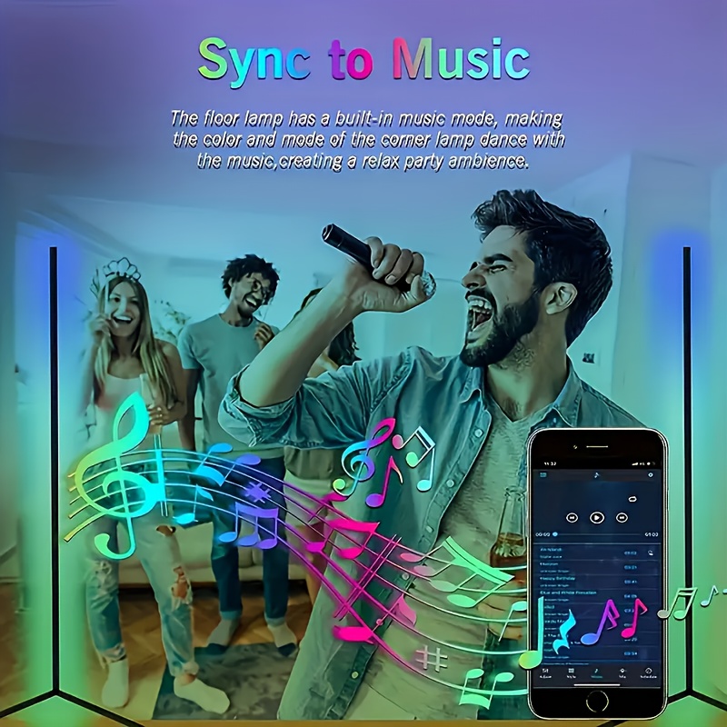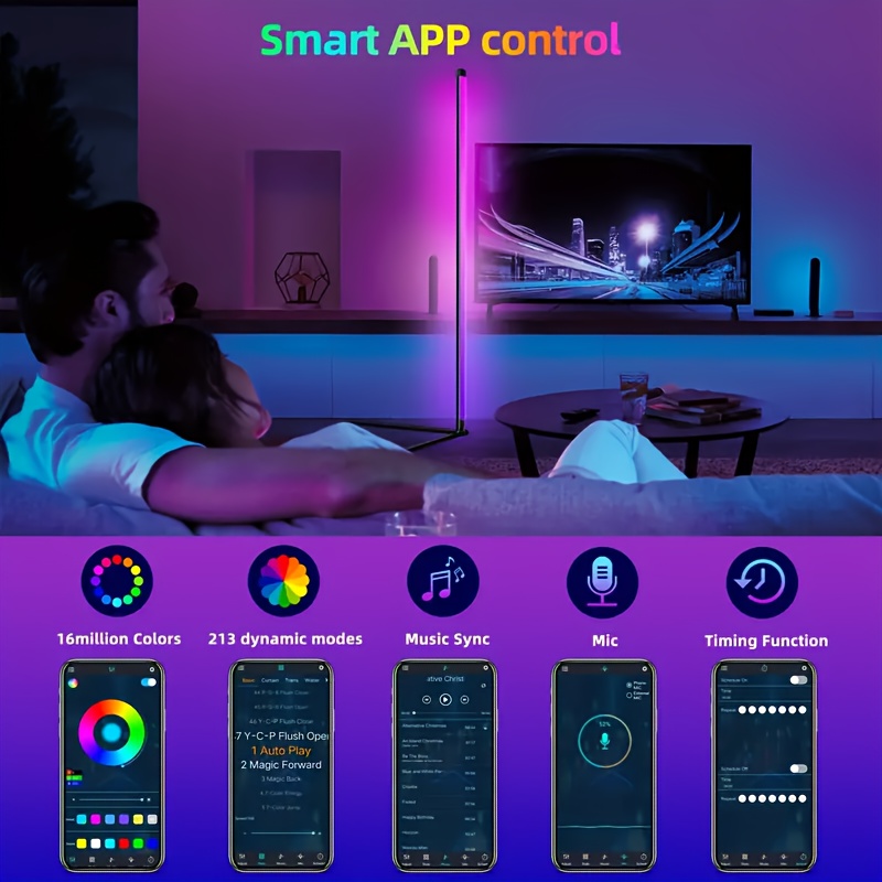 Lampe de sol d'angle RGBIC avec 16 millions de couleurs vibrantes, alimentée par USB, contrôle via application intelligente, synchronisation musicale, 1600 options de couleurs, à intensité variable, fonction minuterie, noire, idéale pour Noël, chambre à coucher, salonLampe de sol d'angle RGBIC avec 16 millions de couleurs vibrantes, alimentée par USB, contrôle via application intelligente, synchronisation musicale, 1600 options de couleurs, à intensité variable, fonction minuterie, noire, idéale pour Noël, chambre à coucher, salon
