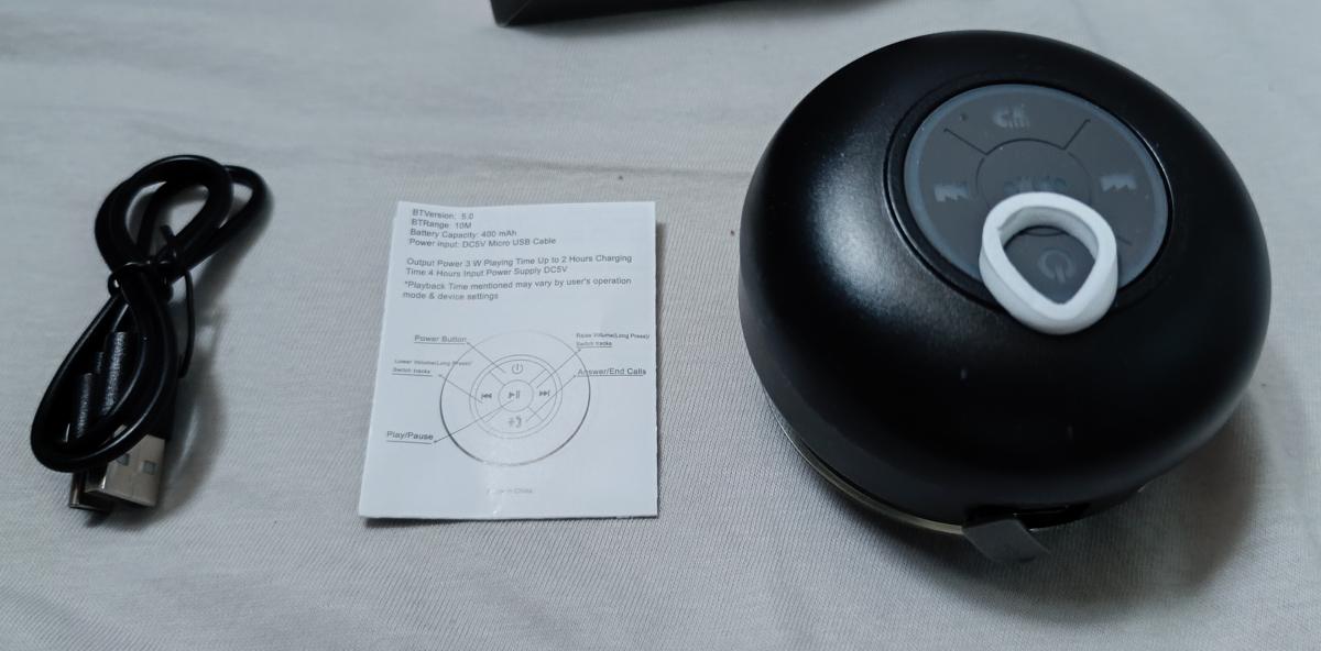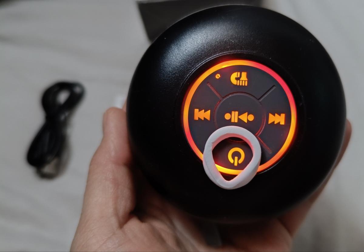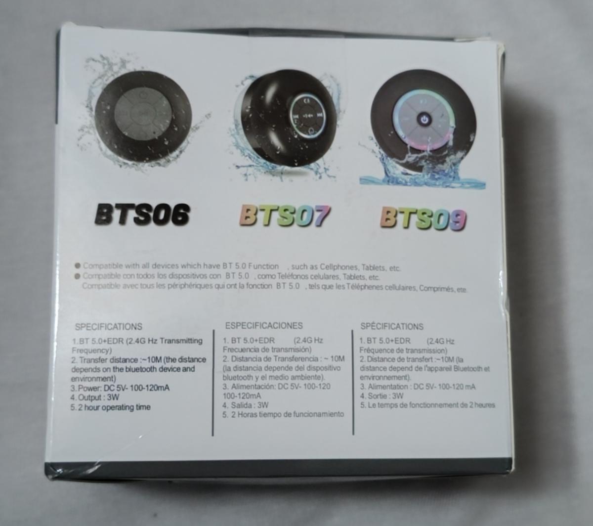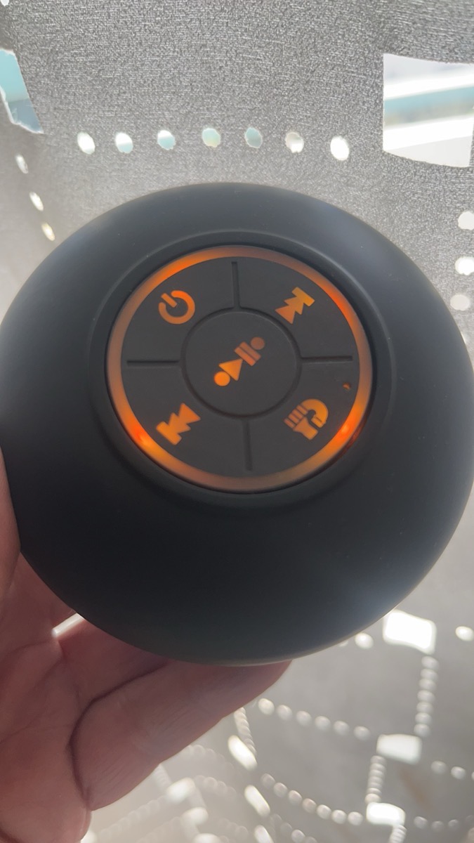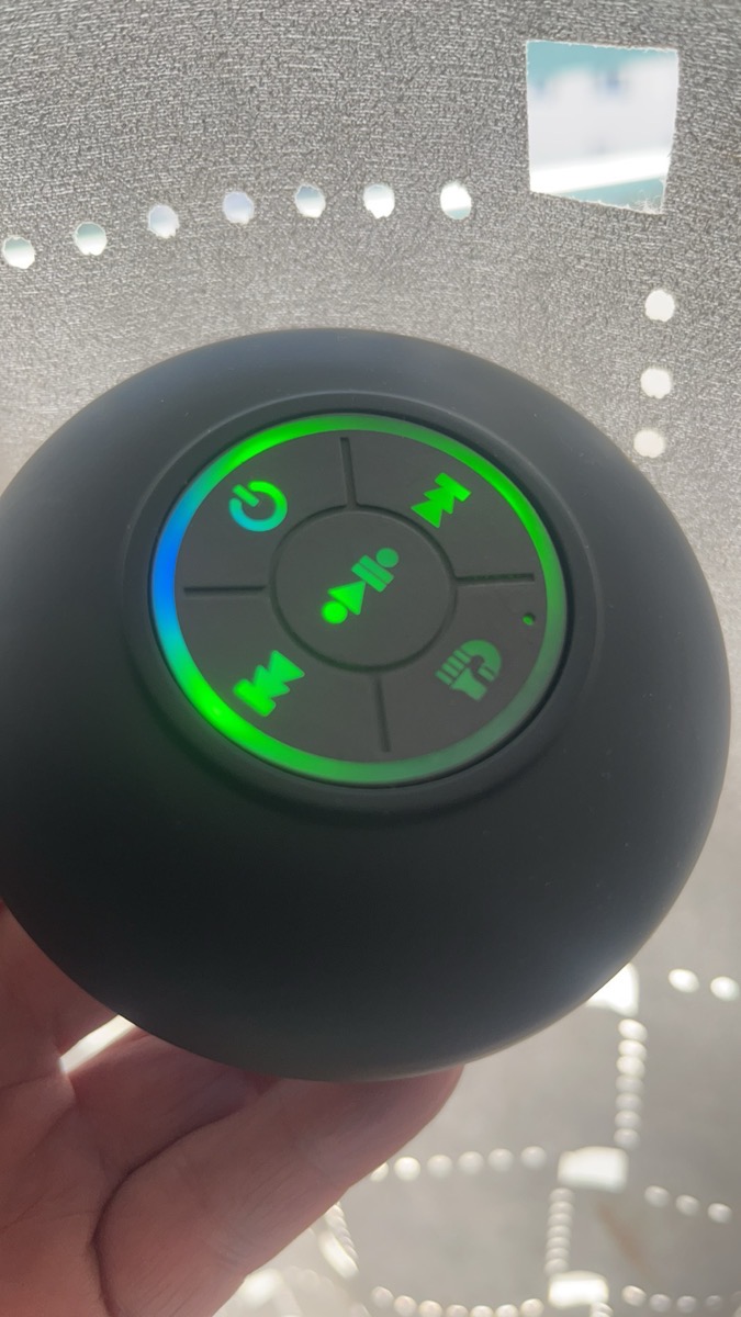 8 avis pour Mini Haut-Parleur LED de Salle de Bain, Enceinte Sans Fil Compacte avec Chargement USB, Batterie, Contrôle par Bouton et une Grande Ventouse Incluse