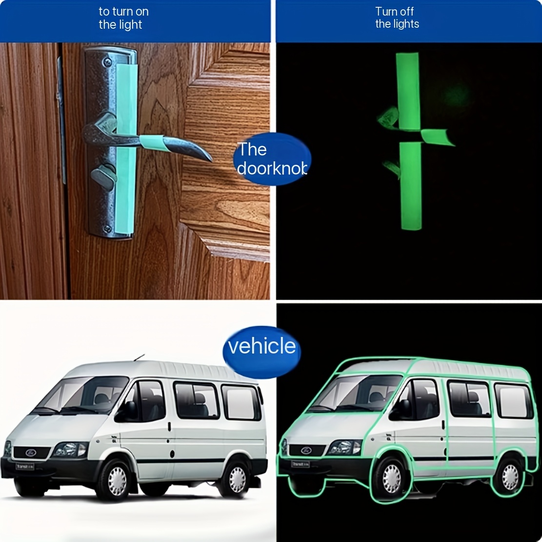ruban est phosphorescent. Il n’émet pas de lumière pendant la journée, mais il brille lorsque vous l’emmenez dans un endroit sombre