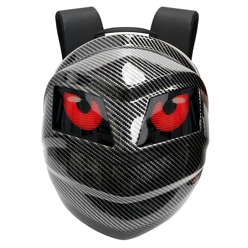 Sac à Dos Intelligent LOY Black Knight en Fibre de Carbone avec Double Écran à Motif Oculaire Personnalisable, Contrôle Sans Fil, Grande Capacité pour Cyclisme en Extérieur