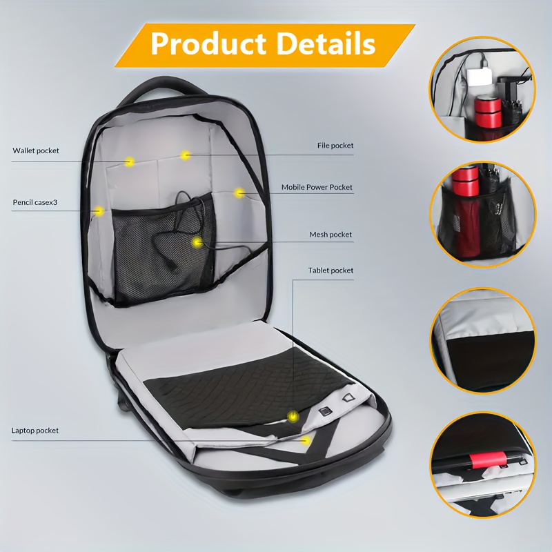 Fonction Particulière: Compartiment pour ordinateur portable, Compartiment pour tablette, Lumières LED
