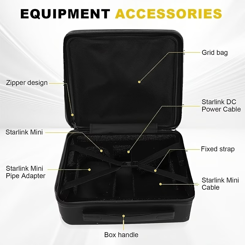 Étui rigide fabriqué en matériau durable et étanche, offrant une sécurité maximale pour votre Starlink Mini lors des déplacements.